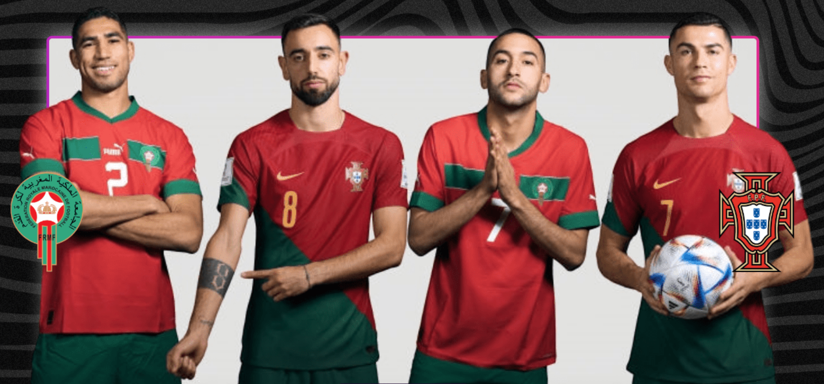 모로코는 조별리그를 포함하여 정말 멋진 여정을 보여주고 있습니다. 모로코가 속했던 F조는 지난 FIFA 월드컵에서 2위와 3위를 차지한 팀이 포함되어 있었기에 이번 카타르 월드컵에서 가장 치열한 조로 여겨졌습니다. 모로코는 벨기에와 캐나다를 꺾고 크로아티아와 무득점 무승부를 기록하며 1위를 차지했습니다. 마지막 16강에서는 또 한 번의 뛰어난 수비와 공방을 이어간 끝에 승부차기에서 무적함대 스페인을 물리쳤습니다. 핵심 선수 하킴 지예흐(29세)선수는 지금까지 크로스(15개), 슛(7개), 패스(192개)를 하며 팀을 이끌고 있습니다. Achraf Hakimi와 꿈의 듀오를 결성한 지예흐(Ziyech)는 이제 모로코 축구사에 남을 새로운 역사를 쓰는데 일조하고 있습니다. 이번에도 포르투갈을 이긴다면 아프리카 국가로는 최초로 4강에 진출하는 기록을 세우게 될 것입니다.