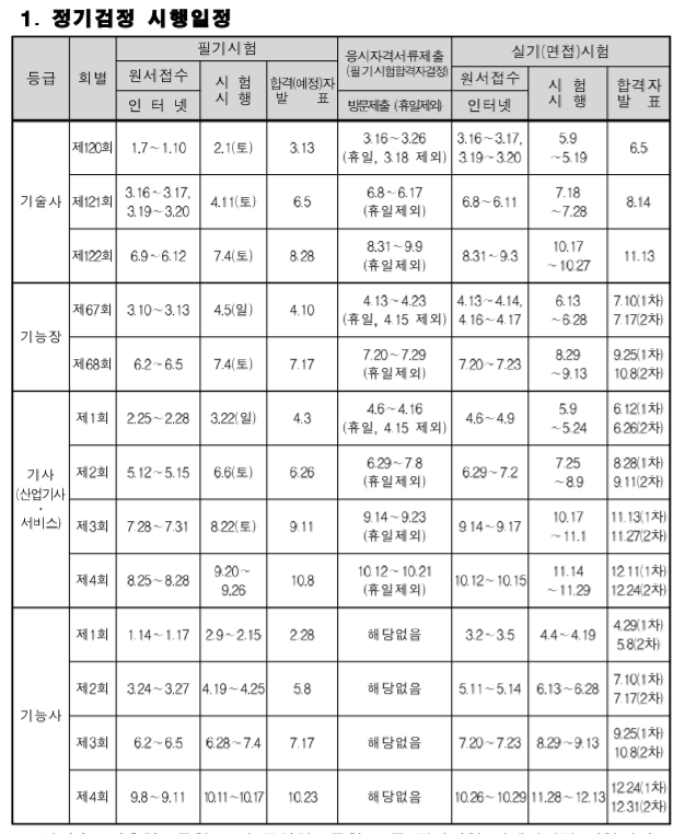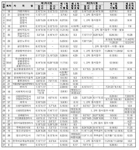 다른 국가자격 시험에 대한 시험 일정은 표를 참고하시기 바랍니다.