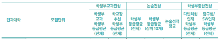2020학년도 입시 결과를 보도록 하겠습니다. 먼저 내신 교과 성적 위주인 학생부 교과에서는 동물생명공학 2.5, 식물생명공학 2.6, 식품공학 2.7, 식품영양 3.5, 시스템생명공학 2.1, 예술공학 대학 3.0, 실내환경디자인 2.2, 패션 2.5 등입니다. 실기성적 위주인 예술대학 주요 학과를 보면 문예창작학과 3.4, 산업디자인 2.9, 시각디자인 2.8, 피아노 3.6, 서양화 3.7, 실용음악 3.6입니다. 학생부 종합에서는 동물생명공학 3.5 시스템생명공학 2.3, 공간연출 2.6등급입니다. 평균 등급 기준입니다.