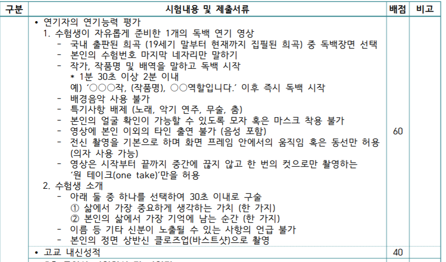 한예종(한국예술종합학교) 연기과, 영화과 전형 수시등급, 입시 정보