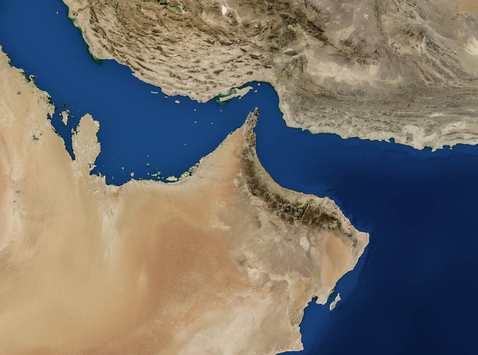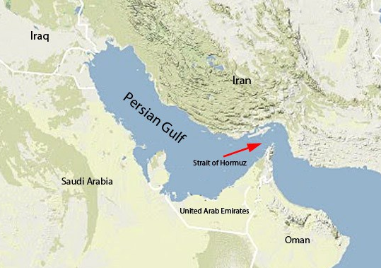 호르무즈 해협은 아라비아 반도와 이란을 가르는 폭이 좁은 해협으로 가장 좁은 곳의 폭은 54km이니 상당히 좁은 지역입니다. 호르무즈라는 이름은 사막섬의 이름인 호르무즈에서 온 것입니다. 좁은 해협이다 보니 수심이 깊지 않아 이 지역에서 생산되는 원유를 수송하는 유조선이 다닐 수 있는 항로가 제한적입니다. 이 해협을 지나서 수송되는 원유의 양은 1천 5백만 배럴 정도이며 세계 해상 원유 수송량의 30% 정도를 차지하고 있는 중요한 지역입니다. 해협의 북쪽 지역은 이란 영해이며 남쪽은 오만과 아랍에미리트 관할로 되어 있습니다.