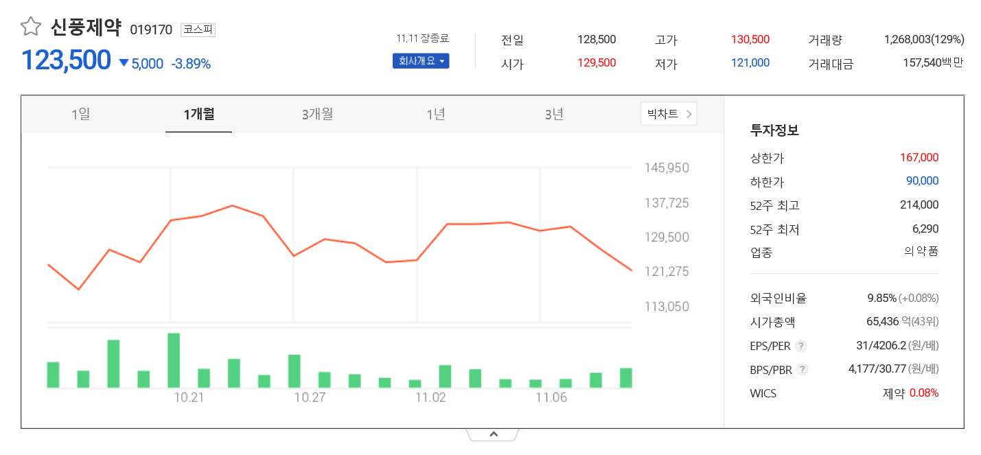 신풍제약(019710, 코스피)은 항말라리아제인 ‘피라맥스’가 코로나19 치료제 후보약물로 거론되기도 했던 클로로퀸과 화학구조가 유사하다고 알려지며 치료제로 사용될 것인지 기대가 컸으나, 아직 임상 2상 시험 단계에 있어 갈 길이 먼 상태이다. 신풍제약은 화이자가 개발한 통증 치료제, 고지혈증 치료제 등을 유통, 판매하고 있기도 합니다. 신풍제약은 관련주이기는 하지만 주가는 연일 하락하며 큰 영향을 받지 않은 것 같습니다.