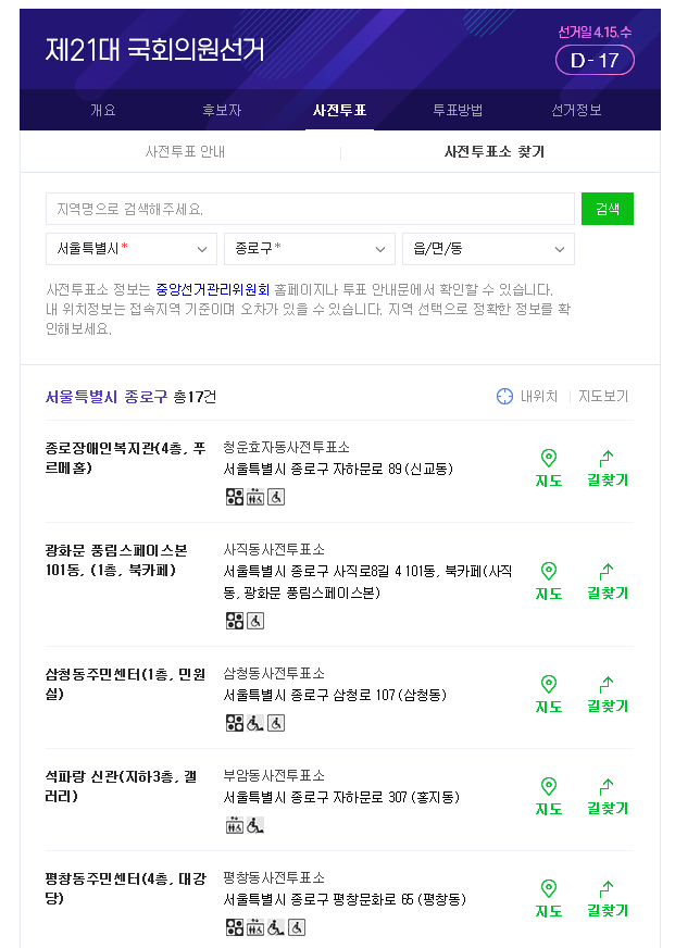 2020총선 사전투표 장소