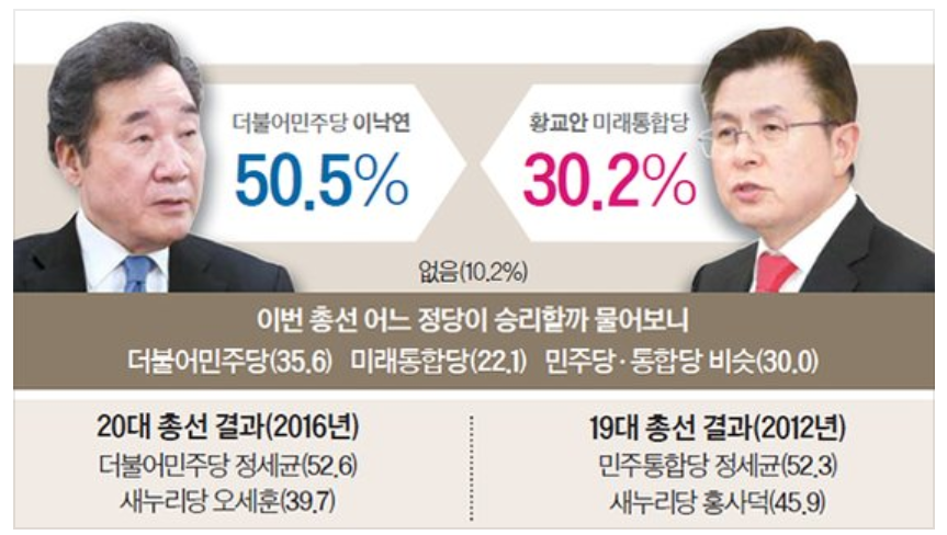2020총선 판세 전망, 이낙연 황교안 지지율, 여론조사 추이(서울 종로구)