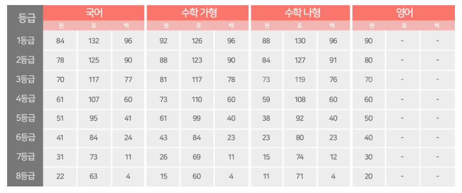2019년 수능 국어의 경우 1등급 기준 등급컷 표준점수는 132점이었으며 원점수로 환산했을 때 84점이었습니다. 표준 점수 최고점은 150점으로 2018년 수능과 비교하면 만점자가 3,214명에서 148명으로 급 감소하였던 것을 보면 상당히 어려웠던 과목으로 당락에 큰 영향을 끼쳤던 것으로 분석됩니다. 1등급 인원도 감소하였던 것을 보면 상대적으로 쉽게 출제되었던 사회탐구영역에서 만점이 많이 나왔던 것을 감안하면 인문계 상위권 수험생들에게는 큰 변수였을 것입니다. 국어만큼은 불수능이라는 말이 왔을 만큼 체감 난이도가 높았으니 상위권뿐만 아니라 중위권 학생들에게도 적지 않게 어려움이 많았을 것 같습니다.