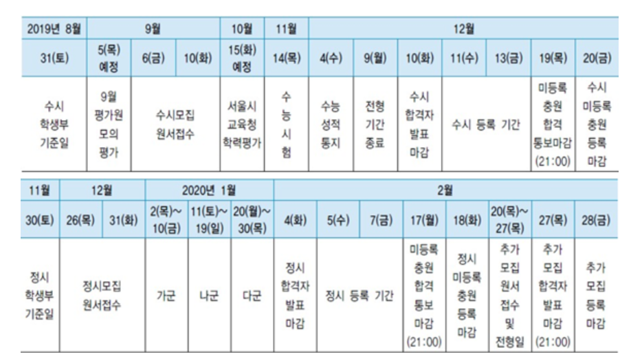 | 2020 정시 등급별 지원 가능대학, 정시 가나다군 대학 알아보기 (2) | 2019.12.09 |