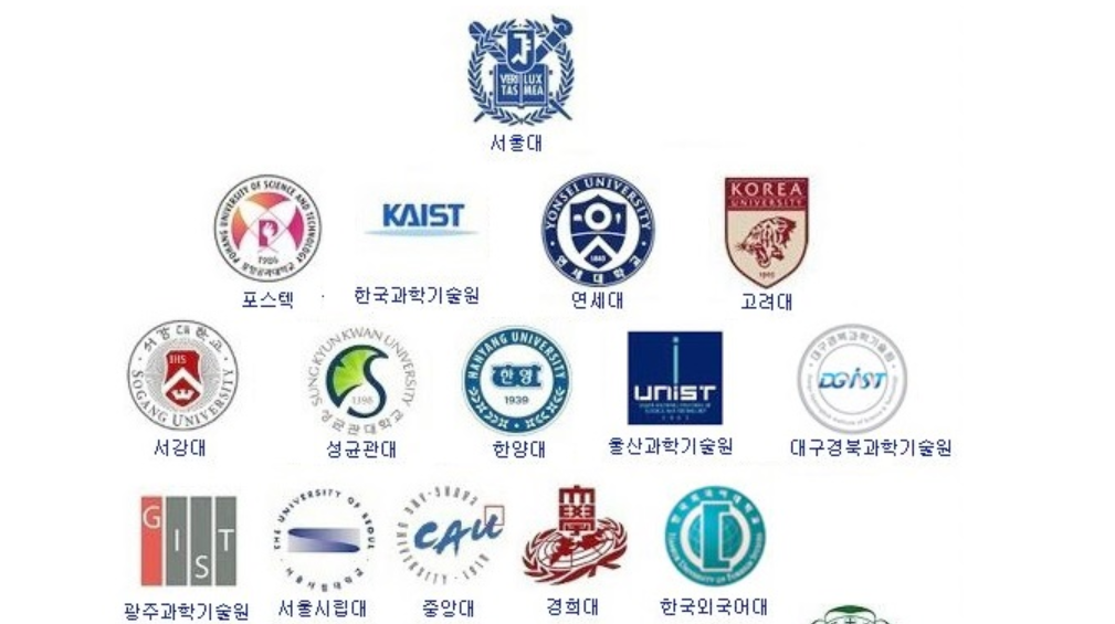 서울대, 연세대, 고려대, 카이스트, 포항공대, 성균관대, 서강대, 한양대, 서울교대, 이화여대, 서울시립대, 한국외국어대, 경인교대, 경찰대
