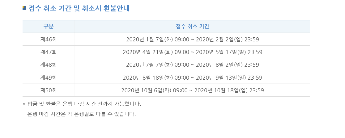 코로나19의 영향으로 2월 시험이 취소되거나 연기되는 것이 아닌가 하는 관측도 있었지만 예정대로 시행이 되었습니다. 코로나19가 5월 이후는 진정될 것으로 예상되어 47회 시험도 큰 변수가 없다면 예정 일정대로 치뤄질 가능성이 클 것으로 예상됩니다.