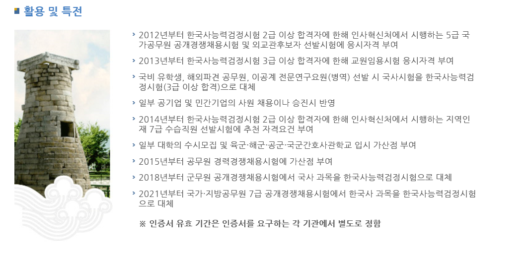 이상과 같이 한국사 능력 검정 시험에 대하여 일아 보았습니다. 한국사 능력 검정 시험은 국가 기관, 공무원 시험의 기본 자격증과도 같은 시험이므로 준비를 하고 있다면 철저한 대비를 하여 빠른 시간 내에 원하는 자격을 취득할 수 있도록 학습을 하는 것이 요구됩니다. 한국사 능력 검정 시험 준비를 하고 있는 분들에게 좋은 결과가 있으시기를 바라겠습니다.