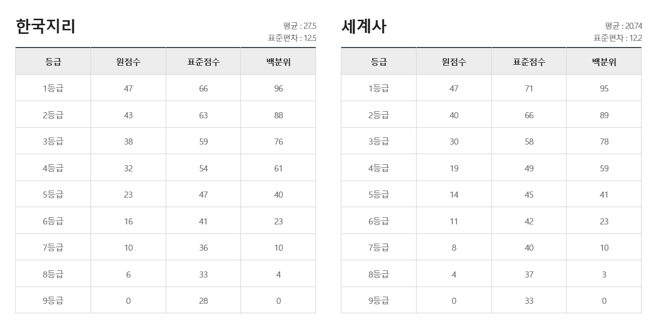 성적통지표를 통하여 등급을 알 수 있게 될 것인데 점수별 확정 등급컷은 시험이 종료되면 알 수 있게 됩니다.