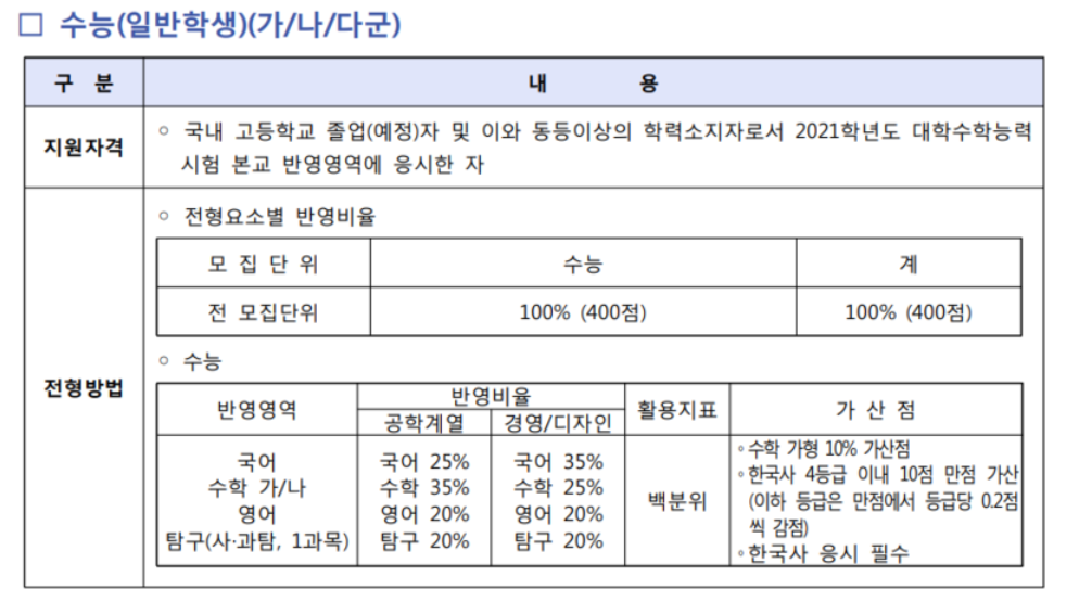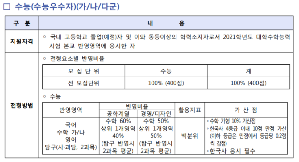 서울과학기술대 정시모집 정보
