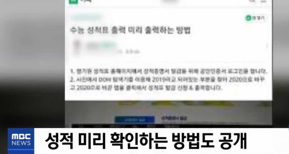 지난해의 경우는 미리 성적을 확인한 수험생들이 있는 것으로 알려져 소동이 일기도 했는데 결과적으로 점수가 바뀌거나 하는 것은 아닙니다. 그러나 보안 문제 등 신뢰도 문제도 있고 미리 성적을 확인함으로 서 얻을 수 있는 유리함도 있기 때문에 형평성의 문제도 있으니 관리 기관에서는 유사한 사례가 없도록 철저히 관리해야 하겠습니다.