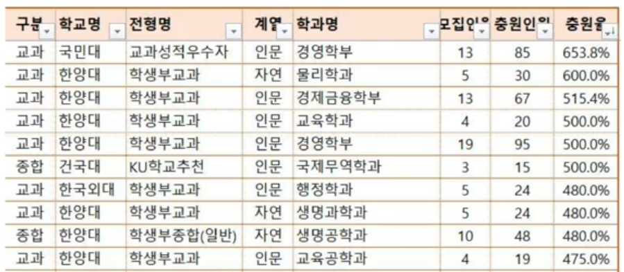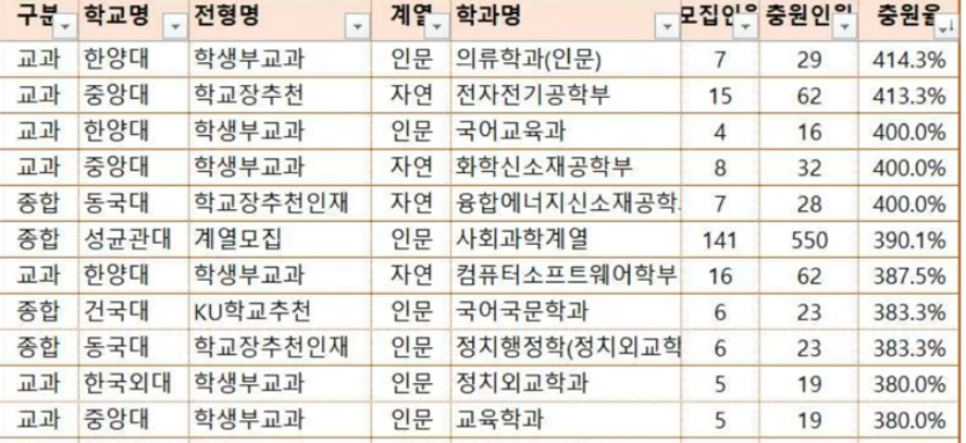 충원율 높은 대학 모집단위
