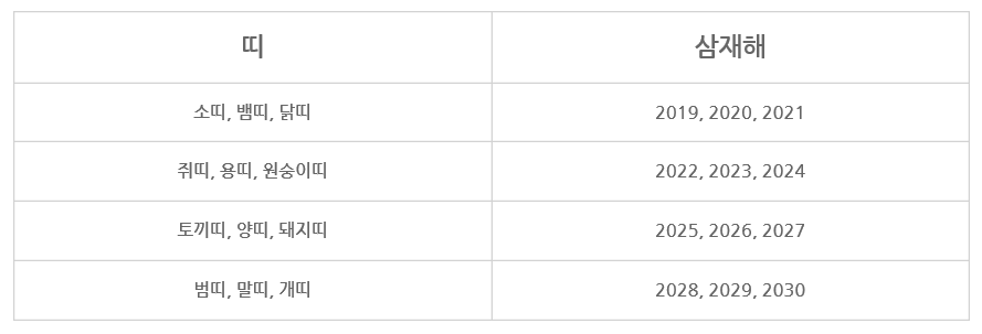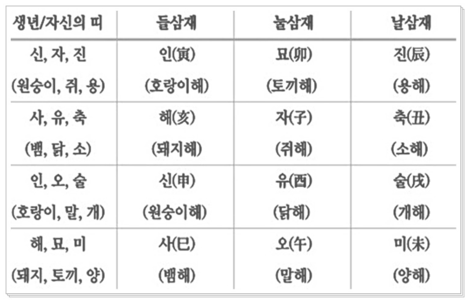 참고로 2022년부터 2024년까지 3년간은 쥐띠, 용띠, 원숭이띠의 삼재가 시작되고 머무르고 나가는 해입니다. 앞에서 살펴 보았듯이 이 세띠는 범띠해인 2022년 임인년이 들삼재해입니다.