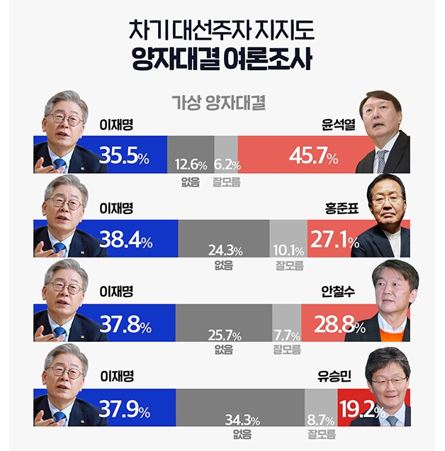 2021년 5월 차기대선후보 대권주자 지지율 여론조사, 이재명 VS 윤석열 양자대결 조사