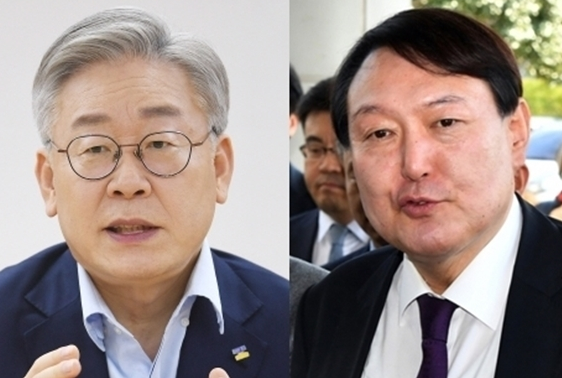 여러 기관 중 이번에는 5월에 오마이뉴스와 와이타임즈에서 의뢰하고 리얼미터와 한길리서치에서 각각 실시한 여론조사 결과를 보도록 하겠습니다. 유력 주자인 이재명 경기도 지사와 윤석열 전 검찰총장의 양자대결을 가상하여 실시된 내용이 눈에 띄는데 아직까지는 정식 출마 선언도 하지 않고 외곽에서 잠행을 하고 있는 윤 전총장이 앞서고 있는 것으로 나타나고 있습니다. 차기 대선이 1년도 남지 않은 상황에서 유력 주자가 나올 것인지 말 것인지 확실하지 않은데 최근 5.18 관련 메시지를 내놓을 것을 보면 정치를 하려고 하는 의지가 있는 것은 분명해 보입니다. 이재명 지사는 직접 광주를 찾기도 하는 등 행보를 넓혀가고 있습니다.