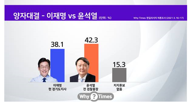 2021년 5월 차기대선후보 대권주자 지지율 여론조사, 이재명 VS 윤석열 양자대결 조사