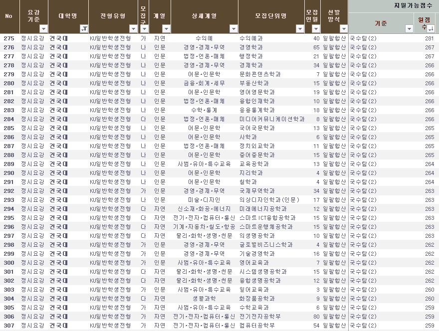 건국대 2021 정시배치표 예상, 정시 등급컷