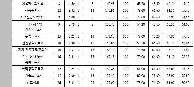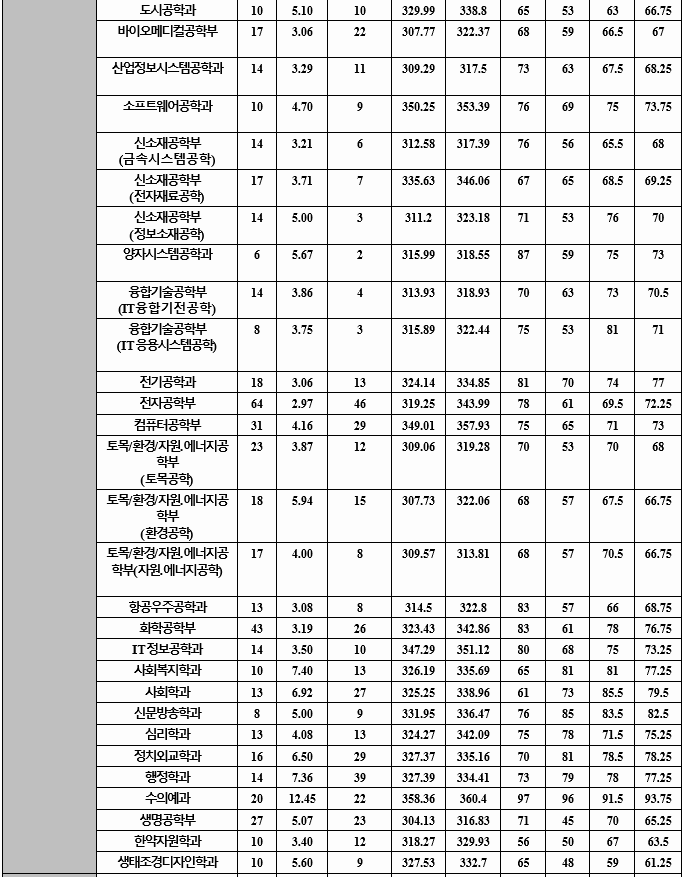 이투스 정시배치표 예상으로 지원 가능 학과를 살펴 보겠습니다. 의예 281, 치의예 277, 수의예 272, 영어교육 251, 역사교육 245, 행정 238, 경영 234, 신문방송 233, 경제 229, 국어국문 229, 간호 226, 화학공학 215, 전기공학 213, 전자공학 209, 수학 204, 건축공학 198로 예상됩니다.