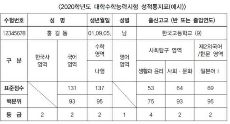 이번 수능 성적 발표일은 12월 23일입니다. 이제 다음주면 성적표를 받아 든 수험생들의 움직임이 빨라지게 될 것입니다. 성적표에는 원점수는 표시가 되지 않으며 표준점수, 백분위, 과목별 등급이 표시됩니다. 표준 점수는 원점수 기준으로 수험생의 성취도를 나타내는 것으로 과목별로 점수가 다른 것이 특징인데 어려운 과목은 표준 점수가 올라 가는 것이 특징입니다.
