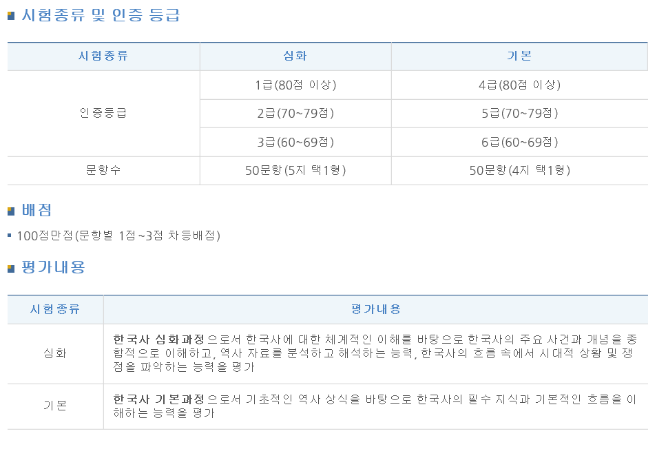자세한 내용은 시험 홈페이지(http://www.historyexam.go.kr)를 참고하시면 되겠습니다.