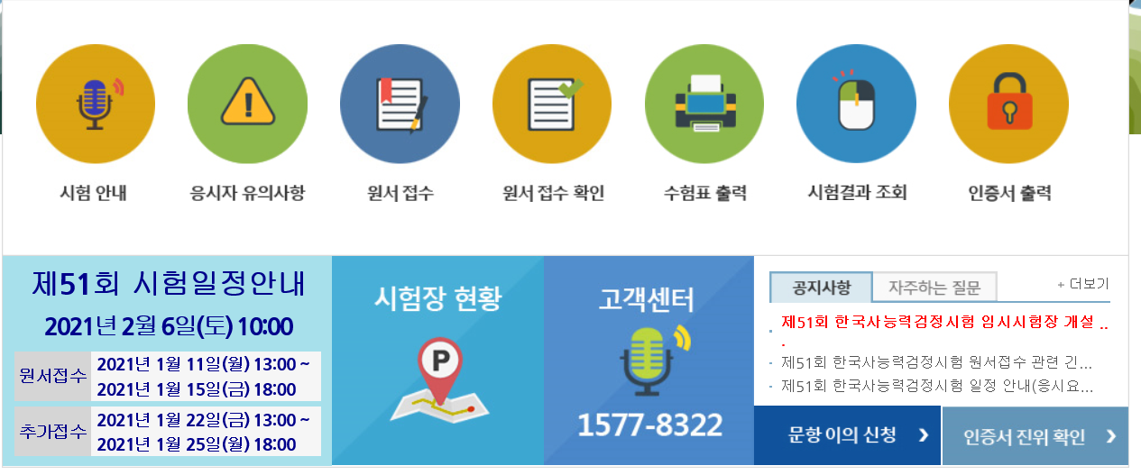 이번에 조금 달라진 것은 접수 시간이 오전 9시부터 하던 것을 오후 1시로 바꾼 것이 특징인데 오늘 홈페이지 원서 접수가 시작되면서 수많은 응시자들이 몰리며 접속이 끊기며 국사편찬위원회에서는 접속자 급증에 따라 원서 접수가 원활하지 않다는 내용을 공지하기도 했습니다. 빠른 시간 내 복구하겠다고 하니 원서 접수 마감 전까지 접수는 문제없을 것으로 보고 있습니다. 의외로 시험 접수가 쉽지 않은 시험으로 알려져 있으므로 가능한 빨리 접수하는 것이 좋으며 본인이 원하는 지역이 마감될 경우 다른 지역으로 가서 시험을 봐야 할 수도 있습니다.