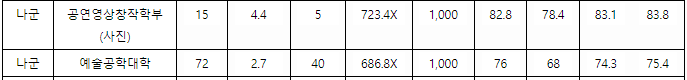 중앙대 안성캠퍼스 정시모집, 등급컷