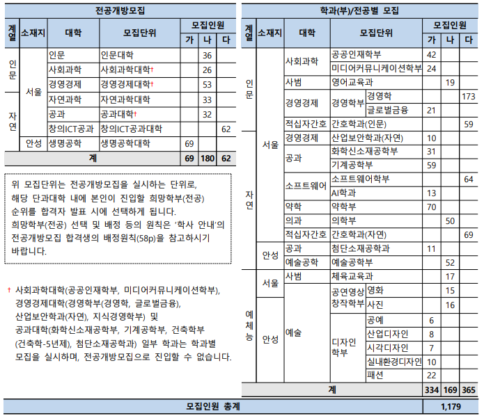 중앙대 안성 캠퍼스는 제2캠퍼스입니다. 중앙대 안성캠퍼스 소재 모집단위는 공과대학 첨단소재공학과(자연 가군), 생명공학대학(자연계 가군), 공연영상창작학부 문예창작, 사진(예체능 나군), 무용(예체능 가군), 예술대학 미술학부(가군), 디자인학부(가군), 음악학부(나군), 전통예술학부(가군), 체육대학(나군), 예술공학부(나군) 등이 설치되어 있습니다. 안성캠퍼스 입학정원은 1,208명이며 정시모집 인원은 일반전형으로 201명입니다.