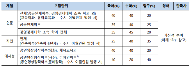 수능 영역별 반영비율