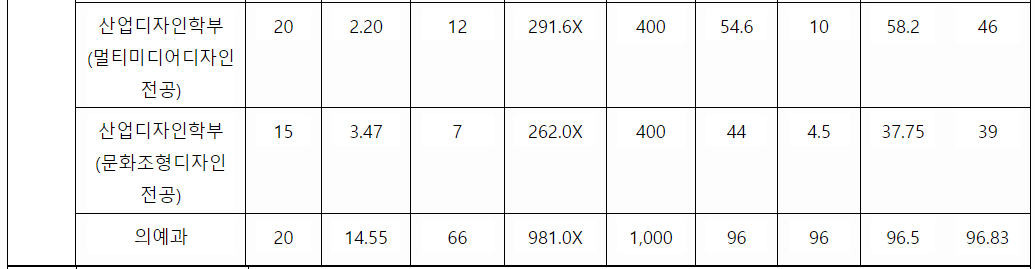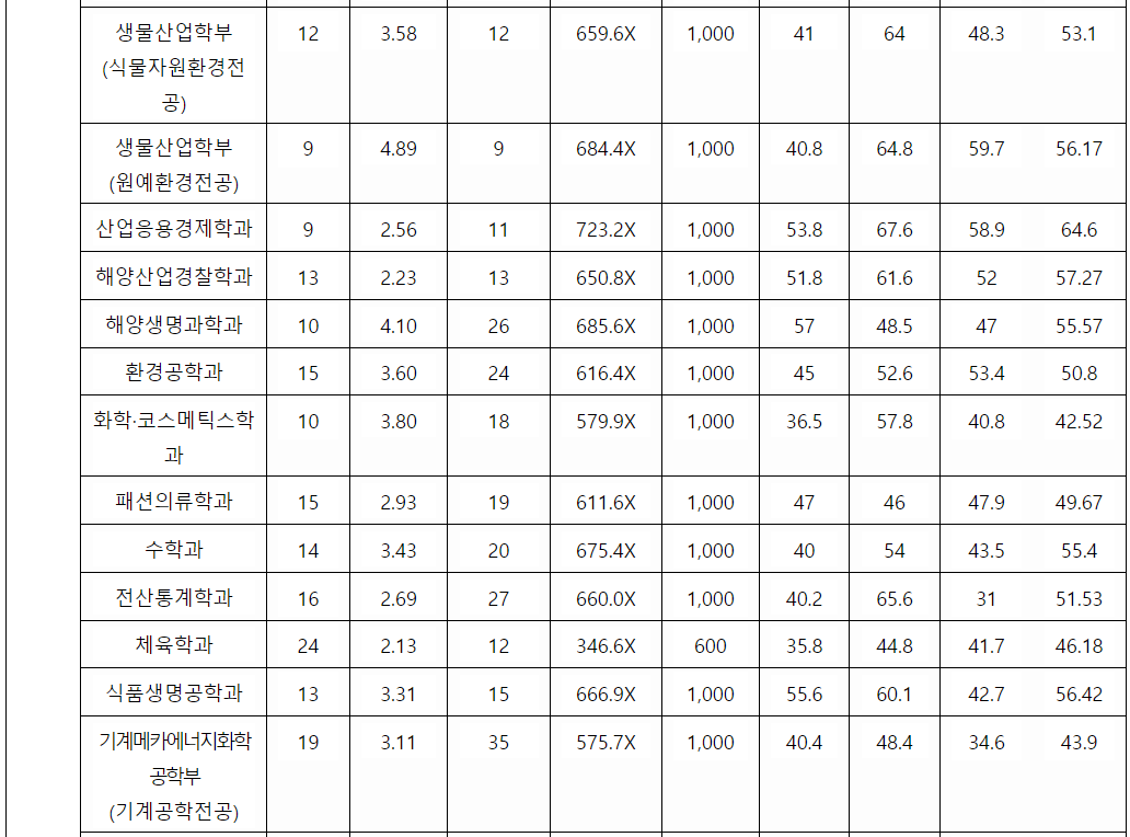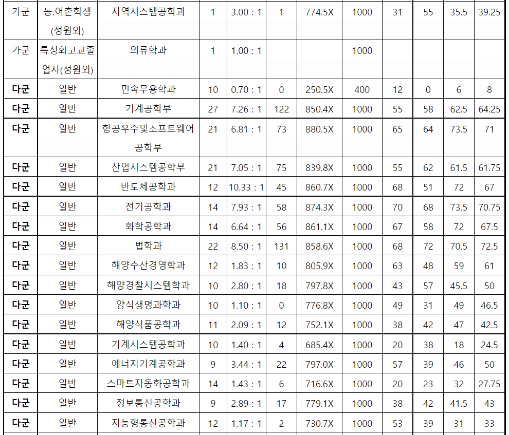 제주대 정시등급컷, 정시배치표 점수