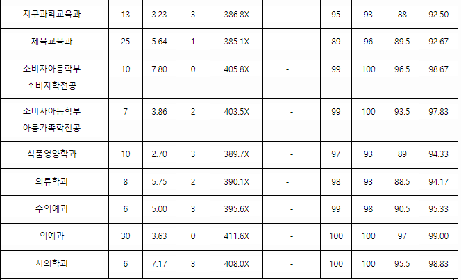 2022 정시배치표 참고 표준점수는 인문계 경영, 경제 406점,백분위 293, 영어 1등급으로 예상됩니다. 응용통계, 정치외교, 행정 403~4점, 290, 독어독문, 생활디자인 393, 284, 실내건축, 의류환경 392, 283으로 보고 있습니다. 자연계는 시스템반도체공학 407점,290, 컴퓨터과학, 인공지능 405, 288, 시스템생물학, 글로벌융합공학 403,287, 대기과학, 천문우주학 402,286대입니다.