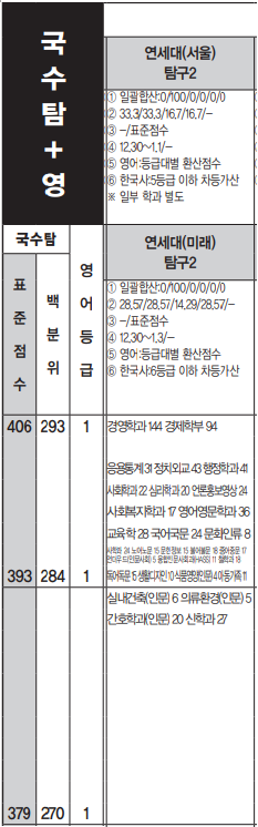 연세대 정시등급컷, 정시배치표 지원가능 점수