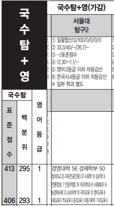 서울대 정시등급컷, 정시배치표 지원가능 점수