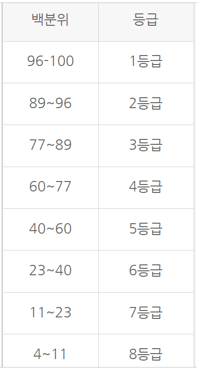 성적표에 표시되는 표준점수, 백분위, 등급은 대학들이 입학 사정에 직접적으로 활용하는 지표이며 대학별로 반영 항목도 다르고 다양한 방법으로 선발하므로 지원시 잘 확인하는 것이 매우 중요합니다. 수험생 여러분들의 좋은 성적을 바랍니다.