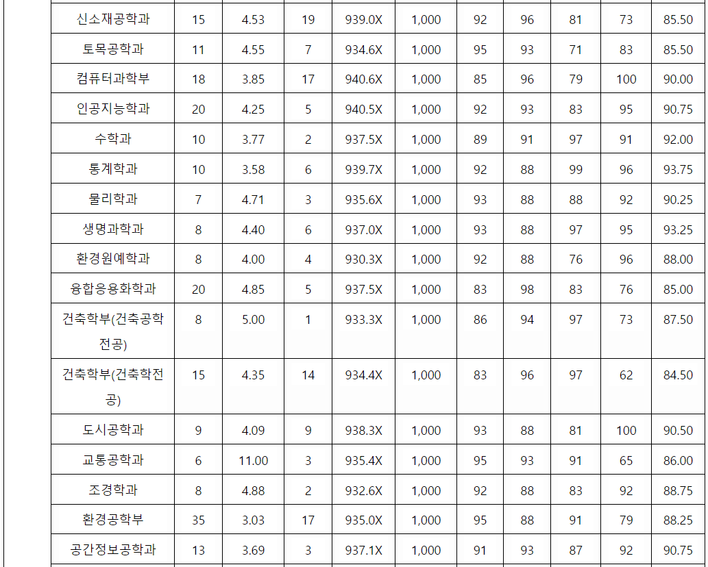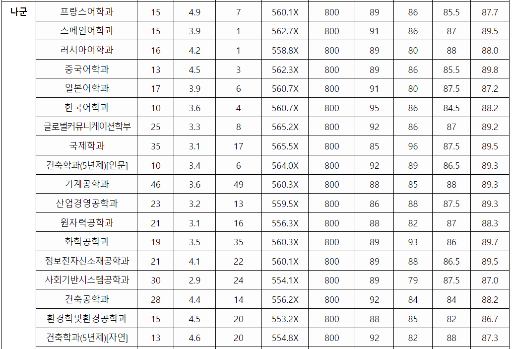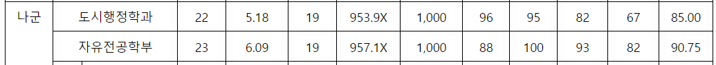 2022 한국외국어대, 서울시립대 지원배치표 일부