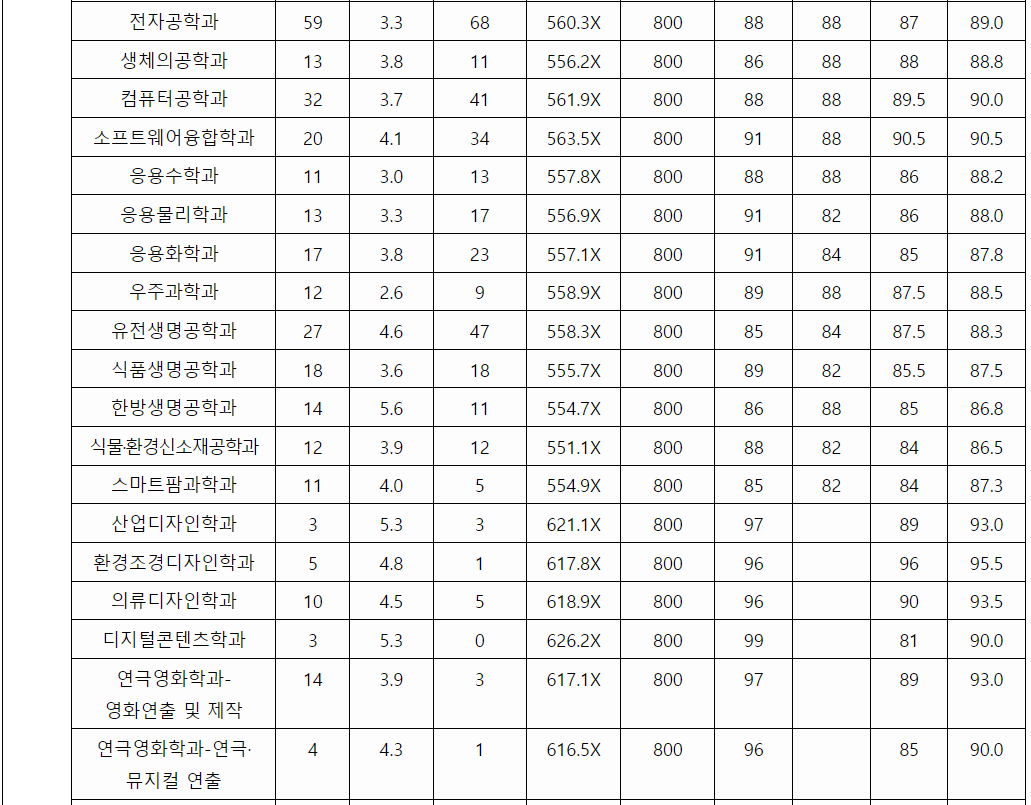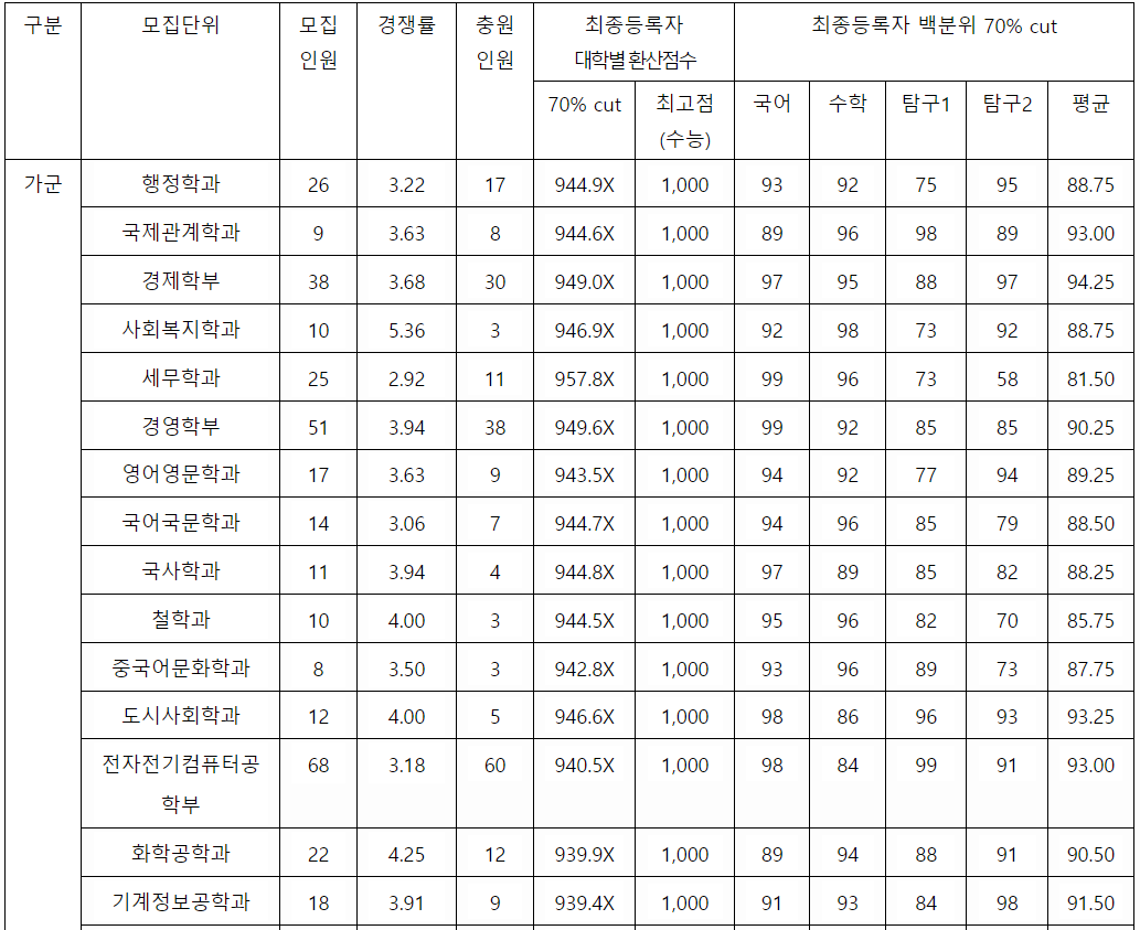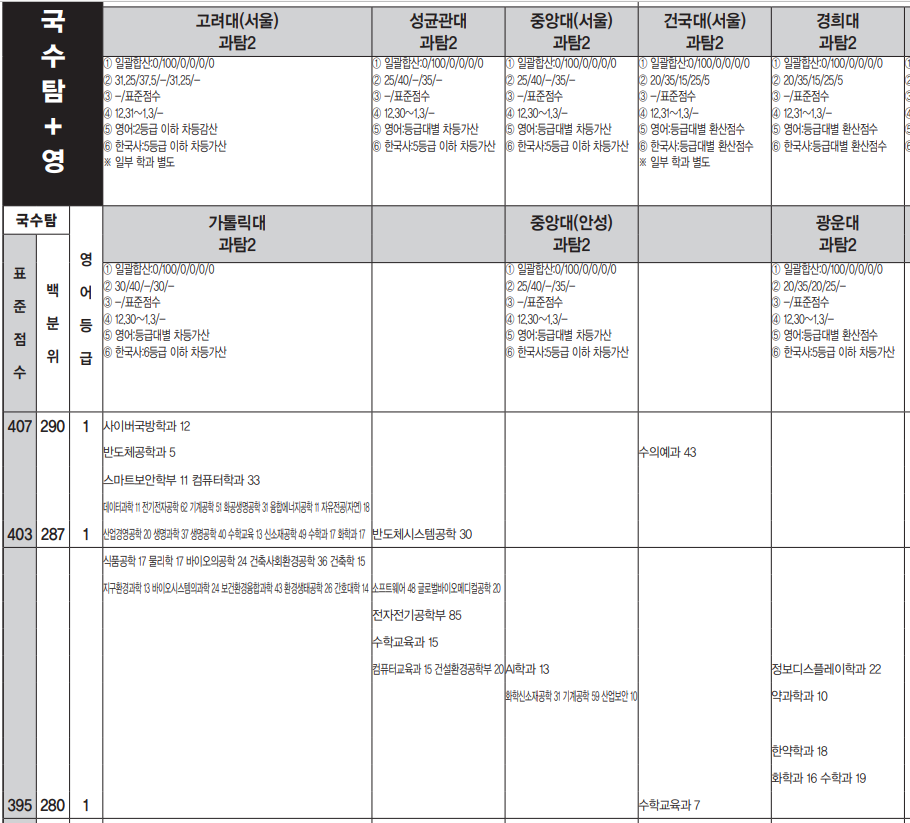 전국 대학에서 상위권을 형성하는 SKY(서울대, 고려대, 연세대), 서성한(서강대, 성균관대, 한양대)와 더불어 중앙대, 경희대, 한국외국어대, 서울 시립대는 정시 모집에서도 등급컷 기준으로 1등급 대에 들어야 안정권에 들어가는 상위권 대학들입니다.