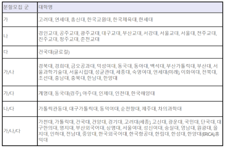가나다 군 모집 대학은 가천대, 경기대, 가톨릭대, 광운대, 국민대, 단국대, 숭실대, 인하대, 한국항공대, 한성대 등이 있으며 세종대는 가,나 군 모집, 아주대, 인천대 가,다 군으로 정시 모집을 시행합니다.