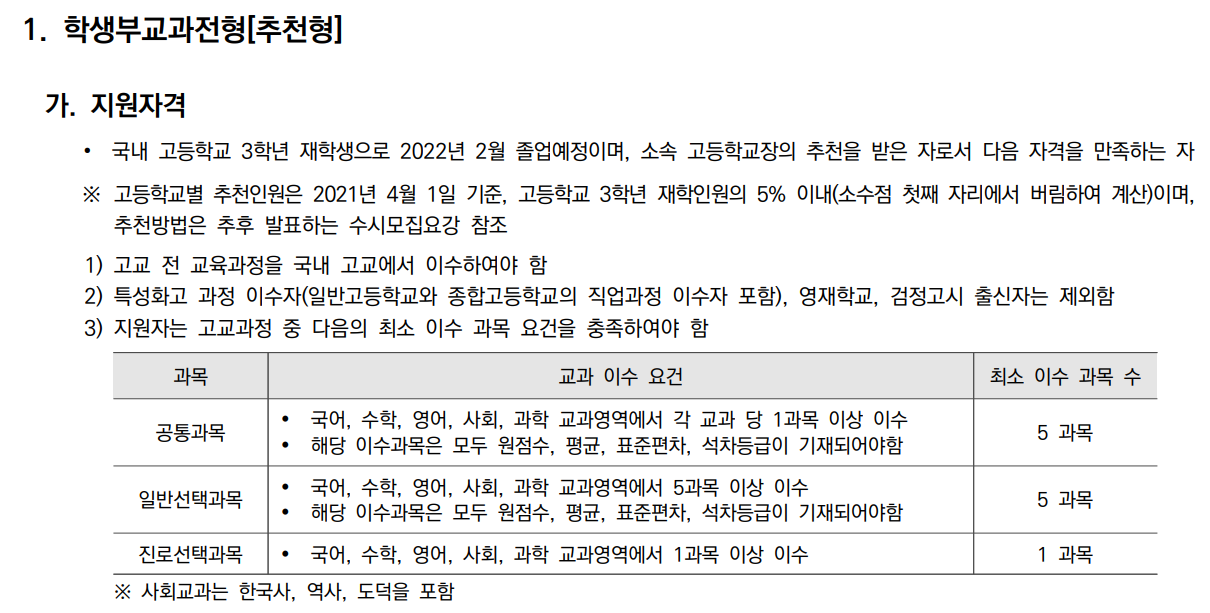 이상과 같이 최상위권 대학의 추천 전형에 대하여 알아 보았습니다.