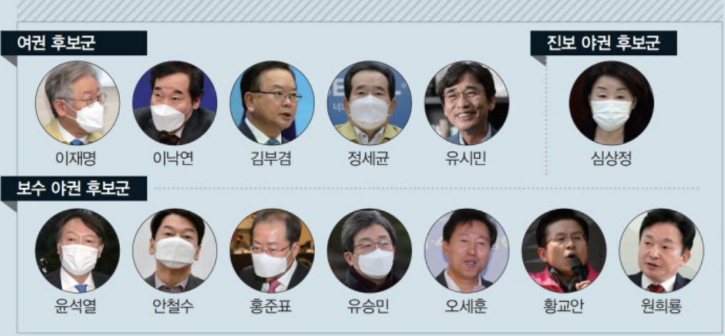 이제 1년여 뒤로 다가온 대선을 앞두고 민주당, 국민의 힘 등 양당의 움직임도 빨라지고 있습니다. 유력 후보인 민주당의 이낙연 당대표, 이재명 경기도 지사가 선두권을 유지하고 있는 가운데 야당인 국민의 힘에서는 홍준표 전 대표, 유승민 전 의원, 원희룡 제주 지사 등이 후보로 거론되고 있습니다. 여기에 이번에 서울시장 후보로 나선 안철수 국민의 당 대표도 서울 시장 선거 결과에 따라 대선에 뛰어들 수도 있다는 전망이 나오고 있습니다. 그동안 꾸준히 유력 후보로 거론되어 왔던 윤석열 검찰 총장은 큰 변수였는데 오늘 3월 4일자로 사퇴를 선언하며 본격 정치인으로 변신하여 대선에 뛰어들 것으로 예상되는 등 대선 일정이 시작되는 것 같습니다.