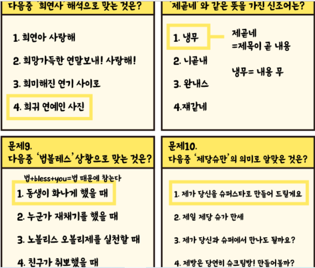 2022 신조어 테스트, 나의 신조어 실력은?