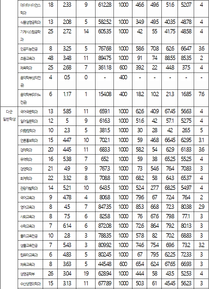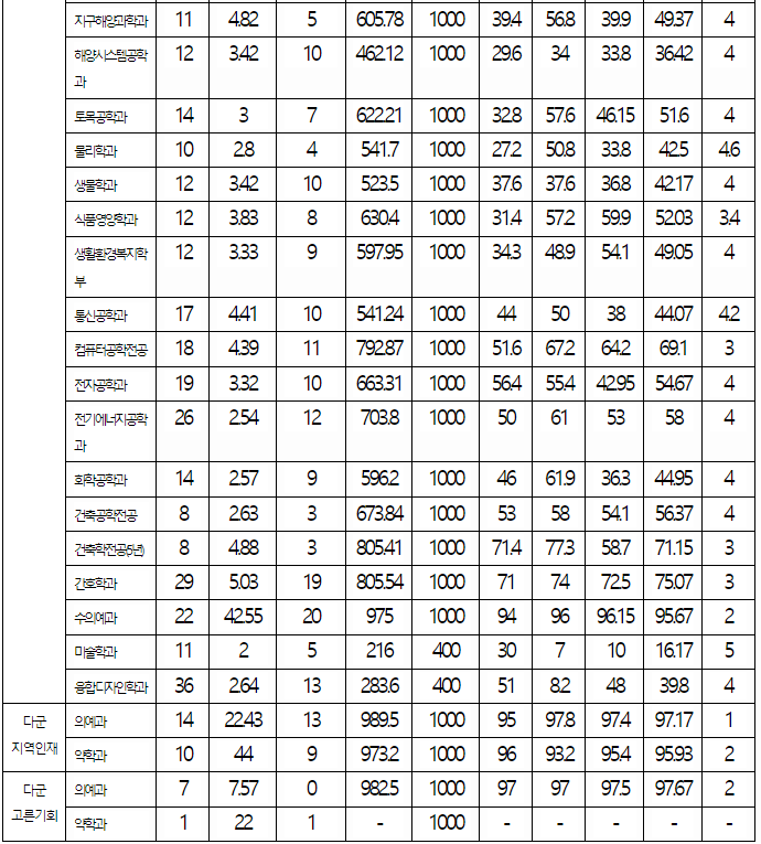 2022/23 제주대 정시등급컷, 정시배치표 점수