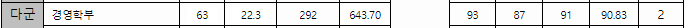 표준점수 정시배치표 참고점수입니다. 가군 빅데이터응용 387, 회계세무 386, 경영 385, 자율전공 385, 무역 385, 간호(인문) 384, 국어국문 383, 사학 382, 영어영문 381, 글로벌커뮤니케이션 377, 러시아어학 373, 정보디스플레이 385, 소프트웨어융합 384, 컴퓨터공학 382, 전자공학 381, 간호학과(자연) 379, 나군 한의예(인문) 408, 국제학과 379, 건축학과(인문) 379, 의예 416, 치의예 404, 약학 403, 화학공학 384, 응용수학 382, 응용물리 380, 원자력공학 379, 건축공학 376, 스마트팜과학 373입니다.