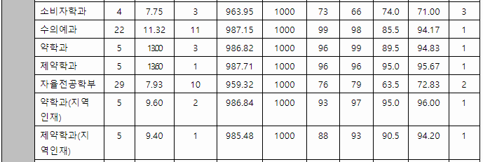 정시배치표 참고 점수입니다. 인문계 가군 경영 368, 경영 366, 무역 364, 사학과 362, 국어국문 360, 언어 359, 국사 357, 한문 356, 나군 국어교육과, 행정 368, 언론정보 366, 영어교육 366, 정치외교 363, 사회복지 362, 문헌정보 360, 자연계 가군 의예 408, 수의예 397, 간호 359, 생화학 358, 화학 356, 식품공학 351, 응용생물 350, 수학 349, 천문우주과학과 344, 물리 343, 생물환경화학과 335, 바이오시스템기계공학과 330, 나군 약학 395, 수학교육과 372, 전자공학과 361, 기계공학부 358, 미생물분자생명과학과 355, 생명정보융합학과, 신소재공학과 351, 건축학과, 항공우주공학과 350, 전파정보통신공학과, 환경공학과 347, 스마트시티건축공학과 345, 의류학과 344, 자율운항시스템공학과 341, 전기전자통신공학교육과 337점으로 예상합니다.