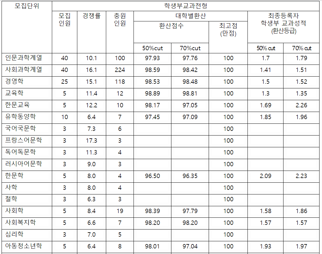2022/23 성균관대 수시모집, 수시등급컷