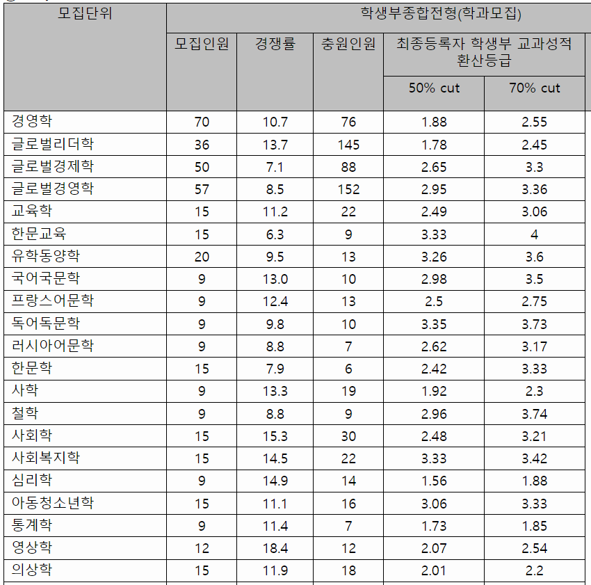 2022/23 서강대, 성균관대, 한양대 수시등급컷, 수시모집 알아보기