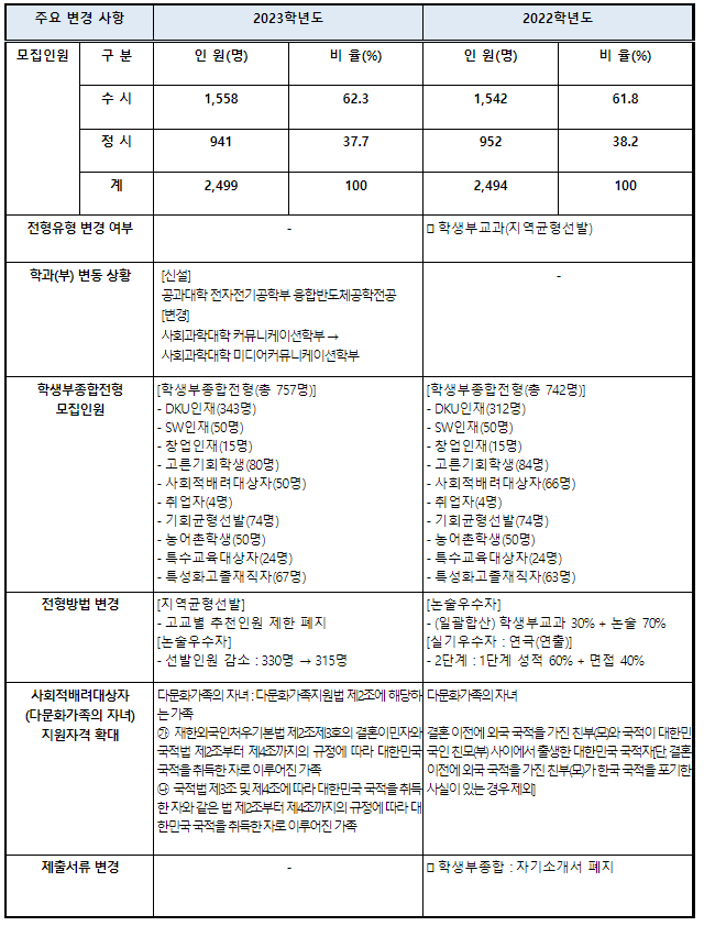 2022/23 세종대, 단국대, 광운대 수시등급컷, 수시모집 정보