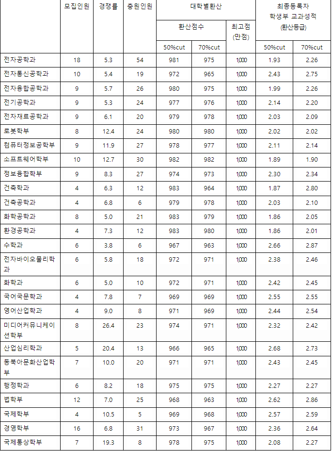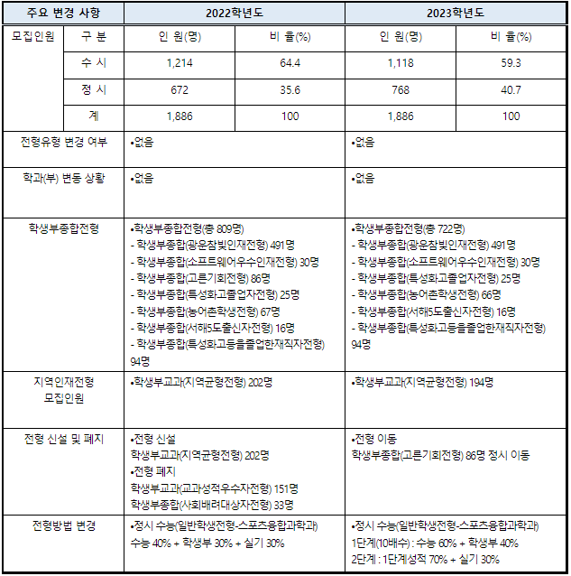 2022/23 광운대 수시등급컷, 수시모집