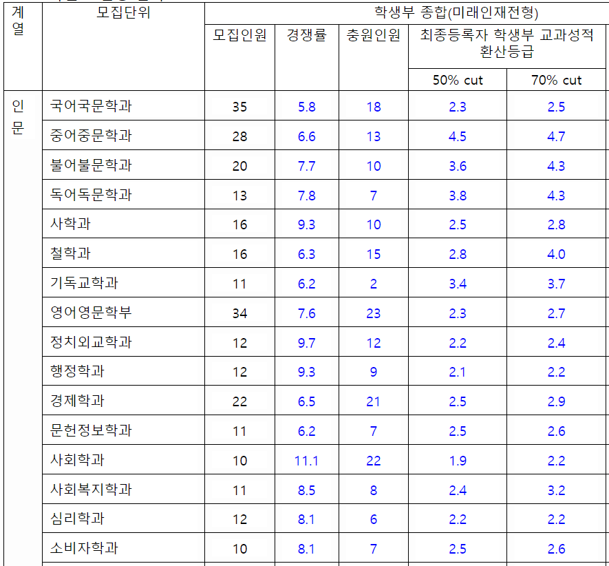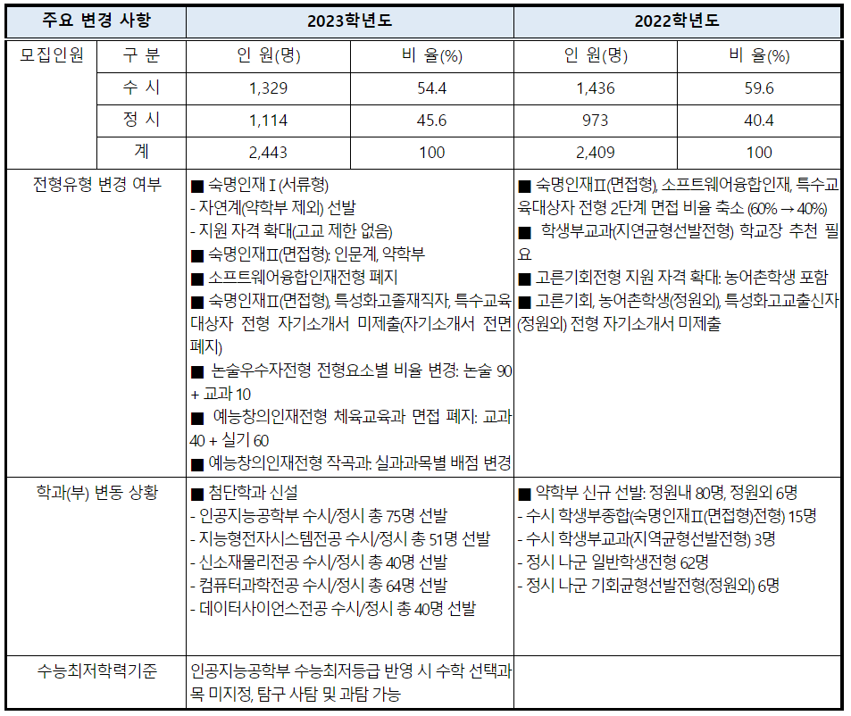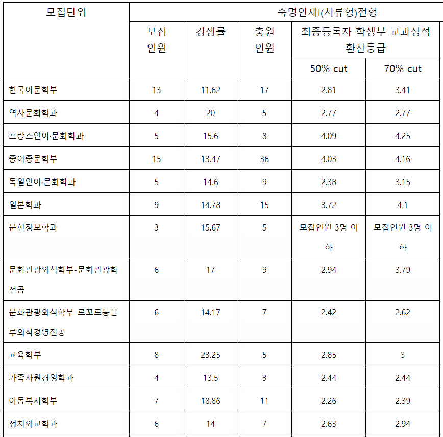 2022/23 숙명여대 수시등급컷, 수시모집