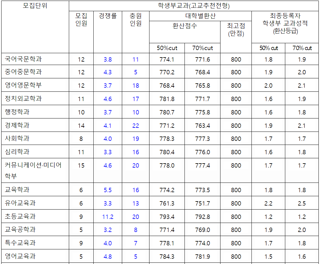2022/23 이화여대 수시등급컷, 수시모집