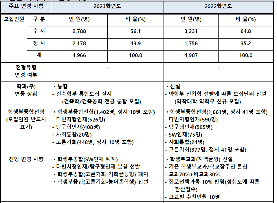 수시모집을 맞아 지난 연도 수시등급컷, 2023학년도 수시모집 개요에 대하여 알아보고 있습니다. 이번에는 중앙대와 경희대 입시 정보에 대하여 알아 보겠습니다.